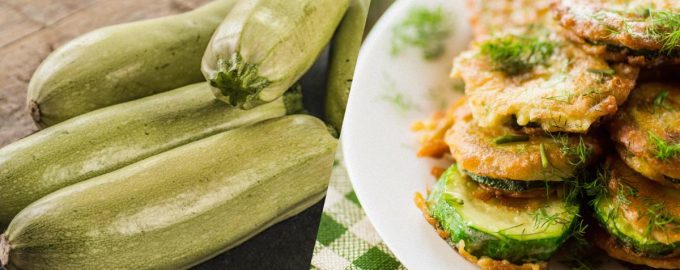 Courgettesmet kan tillagas på många sätt. Det är värt att försöka laga zucchini i smeten / collage My, foto depositphotos.com Courgette i smet i en stekpanna –